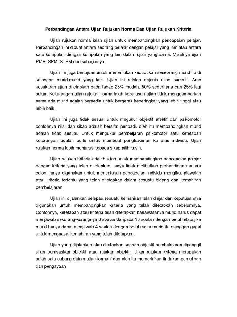 Perbandingan Antara Ujian Rujukan Norma Dan Ujian Rujukan Kriteria Pdf